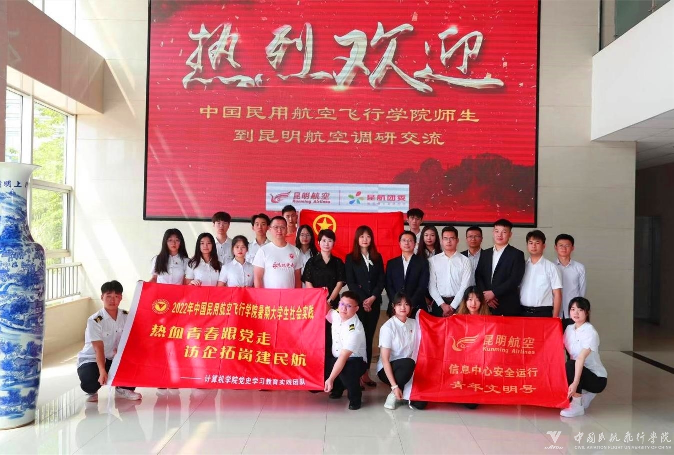 团队实地参观昆明航空公司,观看学校宣传片,与昆明航空公司员工进行深入交流,参观学习,对专业知识进行了解。