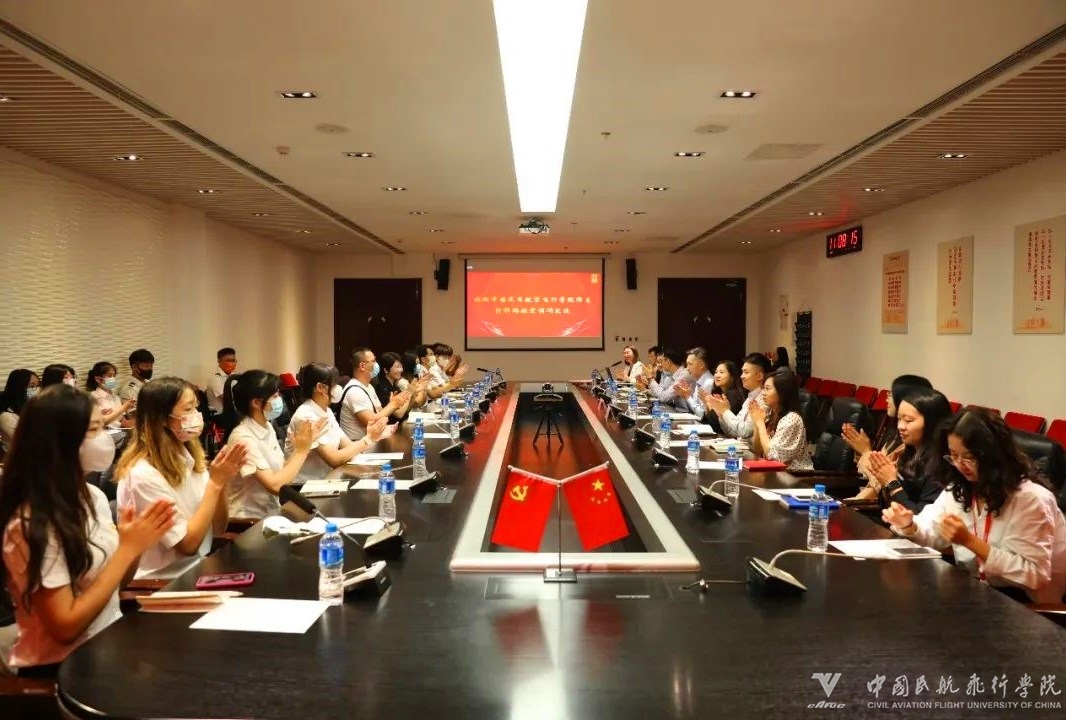 祥鹏航空工作人员引领同学们先后参观了祥鹏航空党建墙、飞行准备室、乘务准备室、AOC大厅等具有行业特点的办公场所。在AOC大厅里,来自祥鹏航空运行控制部的签派员张广涛学长,带领学弟学妹们对公司AOC各环节进行了解,就系统使用情况以及AOC各项工作与大家进行了密切的学习和交流。一系列参观学习后,一行人来到了10楼视频会议室,开展调研交流座谈。