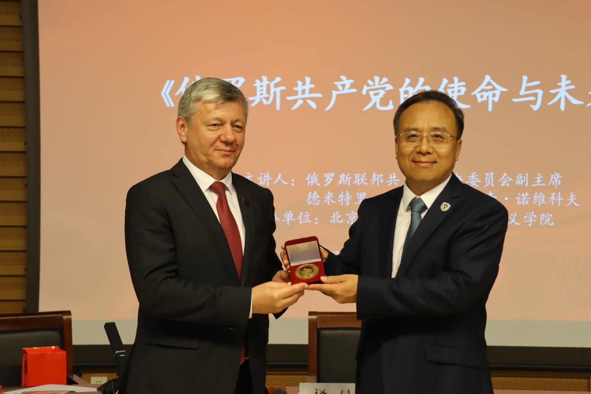 诺维科夫首先介绍了目前俄共的总体情况,包括俄共在若干重要理论和现实问题上的立场观点,并提供了一些党的基本数据,展示了真实的俄共形象。他结合苏共历史上的重大事件阐述了俄共在意识形态方面的基本主张,对于一些西方政党或政治力量对共产主义的歪曲进行了批判,同时回答了关系社会主义发展的一些重大问题,强调苏共下台和苏联解体不是社会主义的失败,社会主义代表人类的未来。最后,诺维科夫就如何更好地捍卫马克思主义、发展社会主义提出了鲜明的观点。他指出,中国成功地证明了沿着社会主义道路走下去,就是走在历史正确的一边。他对于中国特色社会主义的成功给予高度评价。他还畅谈了受邀参加纪念中国人民抗日战争暨世界反法西斯战争胜利八十周年大会和阅兵仪式的感受,对于此次大会和阅兵式的圆满成功向中国人民表示祝贺。