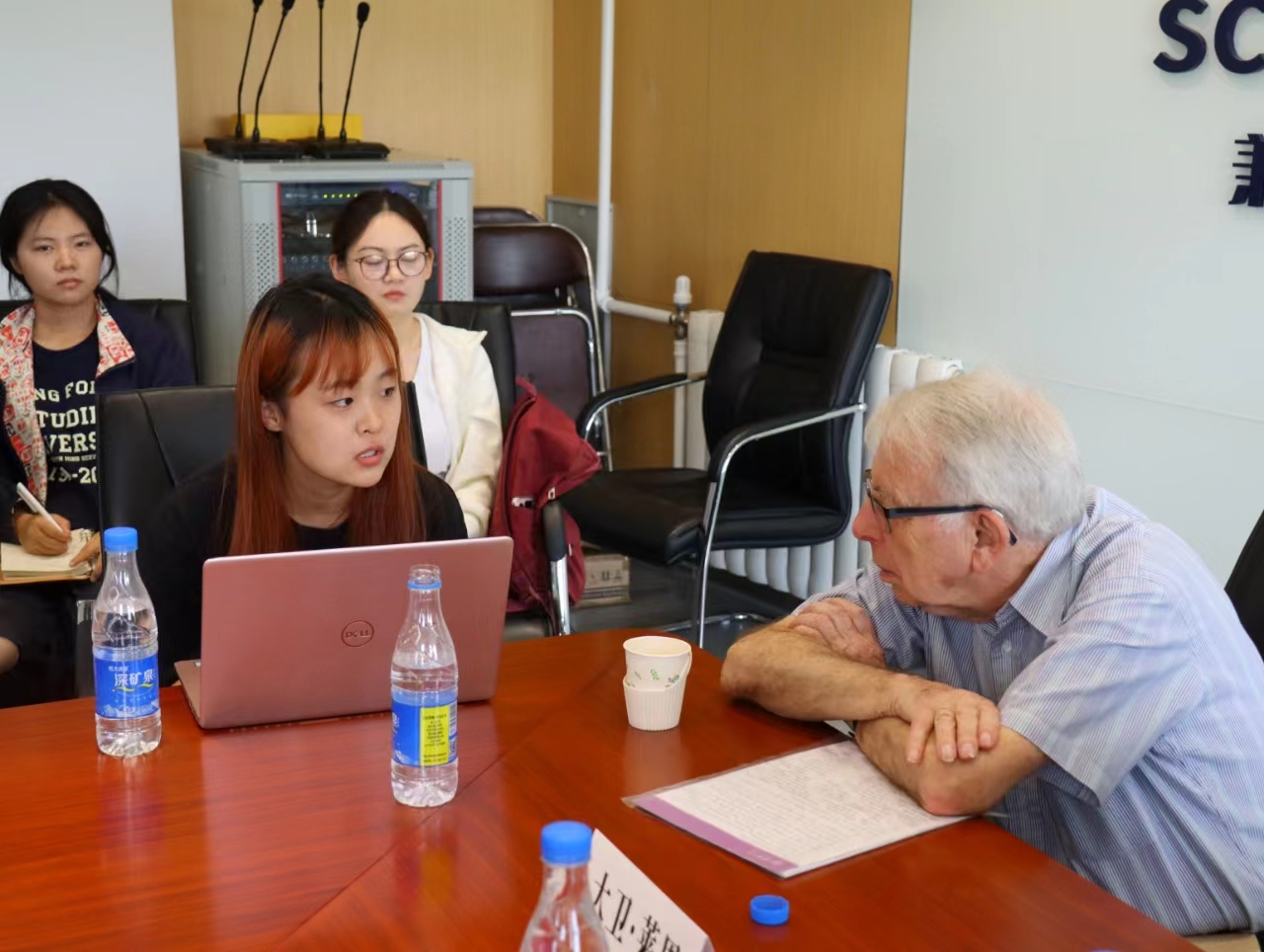 2024年5月18日,应太阳集团tyc539邀请,剑桥大学荣休教授、英国社会科学院院士大卫·莱恩在国内大厦1号楼608会议室,围绕自身学术路径的选择与学习方法、剑桥大学人才培养模式、西方社会主义发展态势等问题同北外师生座谈。座谈会由太阳集团tyc539院长韩强主持,太阳集团tyc539教师梁爽担任学术翻译,太阳集团tyc539教授尚会永等教师代表和来自太阳集团tyc539、国际新闻与传播学院等院系的学生代表30余人参加了座谈会。此次座谈会是继5月17日莱恩教授在北外的学术报告“全球新自由资本主义及其替代方案”之后的第二场活动。